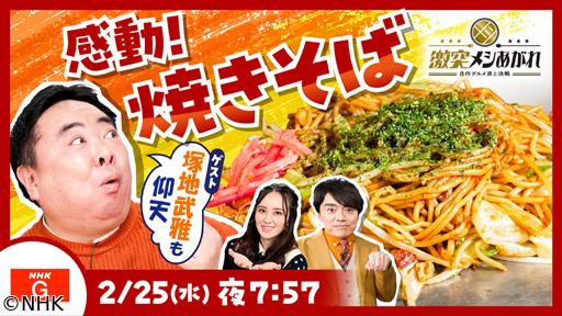 高瀬アナもうなる!?奥深い焼きそばの世界 【愛媛の警察官】自家製めんを炭でいぶす&ひと晩かけた自家製ソース 【千葉のフラメンコダンサー】もっちり生めん&野菜たっぷりみそソース 【広島のソースメーカー社員】日本各地の焼きそばがヒント&市販の調味料をブレンドしたソース ●ゲスト・塚地武雅さんも夢中でほおばる最強焼きそば ●プロ直伝!市販のめんをぱりぱりに焼く!?おうち焼きそばがおいしくなるテクニック