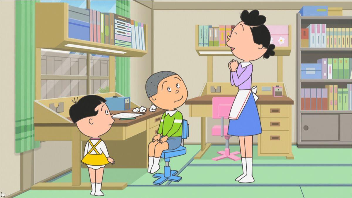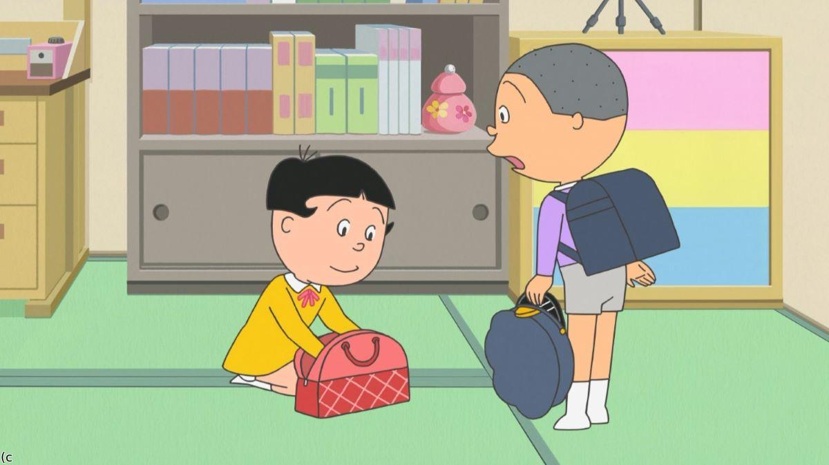 【ワカメがいない日】 カツオが学校から帰ると、ワカメが旅行バッグに荷物を詰めていた。今日はみゆきちゃんの家でお泊り会があるらしい。ワカメが出かけると、タラオが寂しがって涙ぐむので、カツオは「オーバーだなぁ」とからかう。夕食時、家族は「ワカメがいないと寂しい」と話すが、カツオだけは「清々する」と強がる。