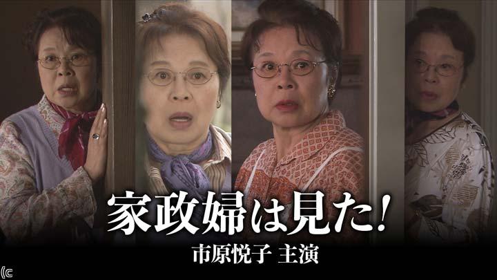 市原悦子・「家政婦は見た!」土曜ワイド劇場の人気シリーズ全26作を放送! 家政婦として派遣された上流家庭の密かなスキャンダルを探り、秘密や悪事を暴いていく!