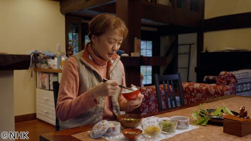カールさんが通勤途中しばしば立ち寄るお寺の境内。ケヤキの大木や苔むした地蔵たちに心が落ち着くという。秋が深まるとティーナさんが作るクリーム煮は、鶏肉でなくタラを使ってあっさり仕上げる。移住してきた住民は散歩中に摘んだムカゴを炊き込みご飯に。山のキノコもごちそうだ。元は小学校の建物だった古民家を、亡き古老に託されたカールさん。脚を悪くしたティーナさんのため、暮らしやすい家に再生しようと動き出す。